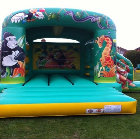 Impress your child's friends with this jungle bouncy castle with inflatable slide. Great for children of all ages and a great theme bouncy castle to hire for boys and girls birthday parties in Weymouth, Dorchester, Bridport, Wareham, Blandford and Dorset. Fantastic artwork on this castle is plastered on the front pillars, arch and the slide it truly is a fantastic looking bouncy castle to hire for children's parties. From a safety point of view this bouncy castle has inflatable walls that stand over 6ft high, with netting above the back wall and a sewn in shower cover, it also has 10 anchor points so it can be securely fasten to the ground for outside hire. The jungle bouncy castle is pipa tagged and tested regularly by an rpii registered inspector and is supplied with ample crash mats for use inside a hall or outside. The jungle bouncy castle measures 13ft by 19ft by 11ft and fits into most halls in the area, but do please check with Weymouth bouncy castle hire to make sure it fits in the hall you wish to hire in Dorset. Why not make your child's birthday party extra special and hire some of our fantastic jungle soft play for there party, we have largest soft play collection for hire in Dorset as well as ball pools or ball ponds for hire. Add bags of Candy Floss great smell and the kids love it.