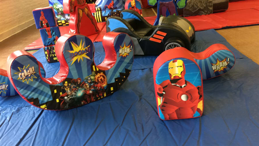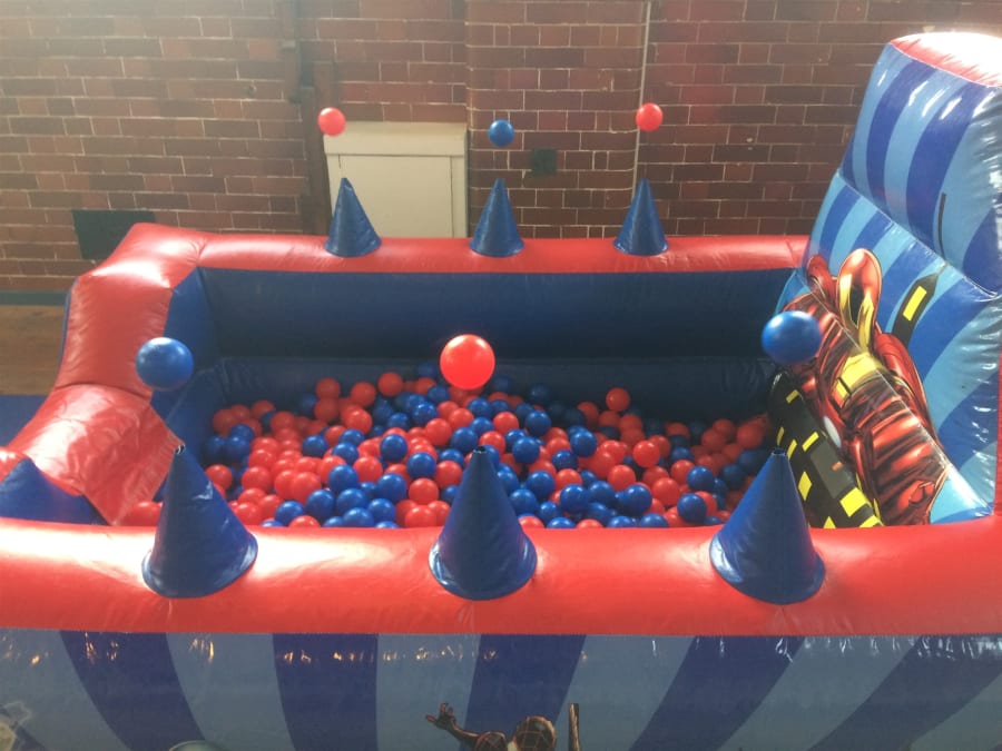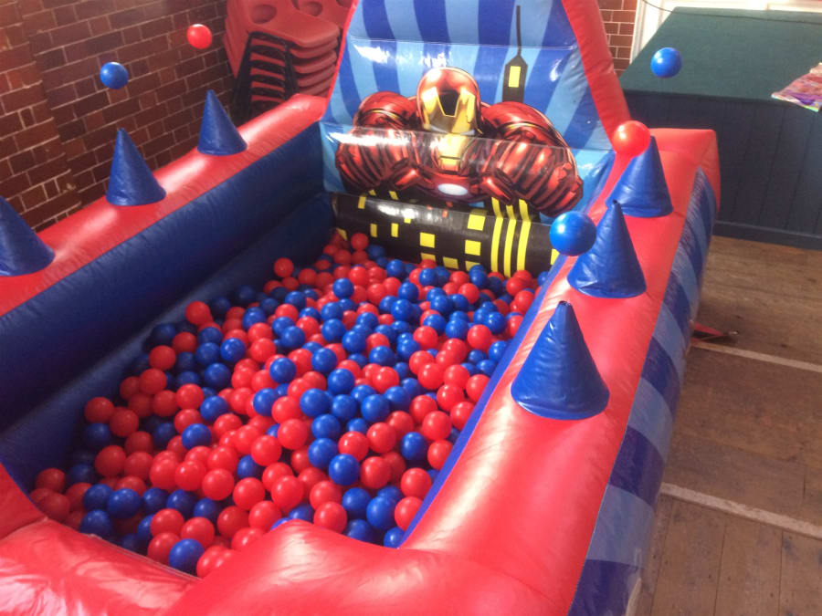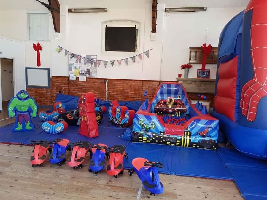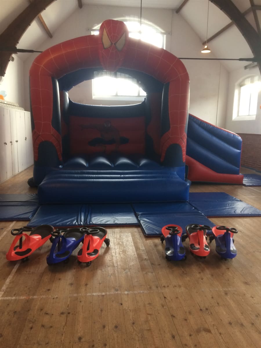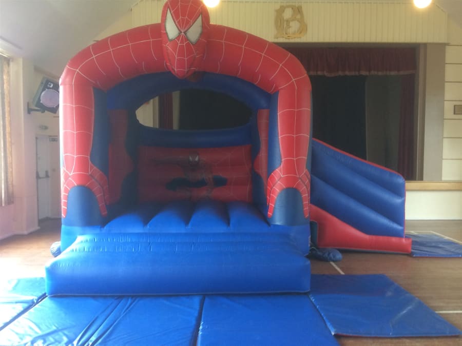 Spider-Man bouncy castle with slide, soft play and ball pool for hire in Weymouth, Dorchester, Bridport, Blandford, Poole, Wareham, Yeovil and all other towns and villages in the Dorset area.