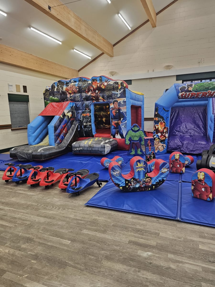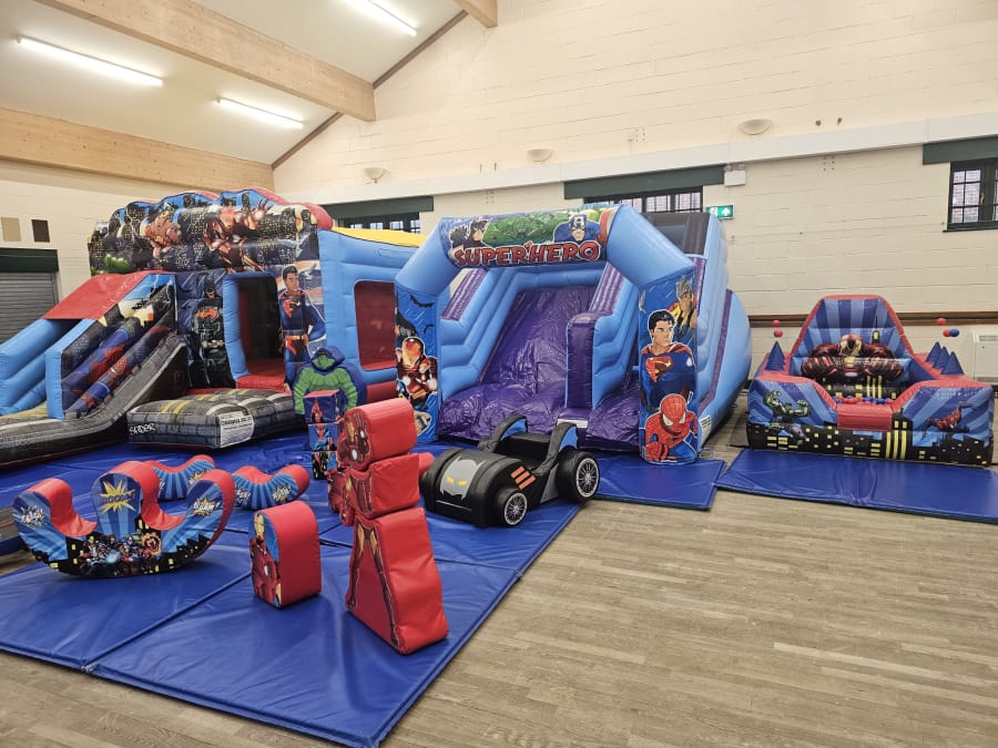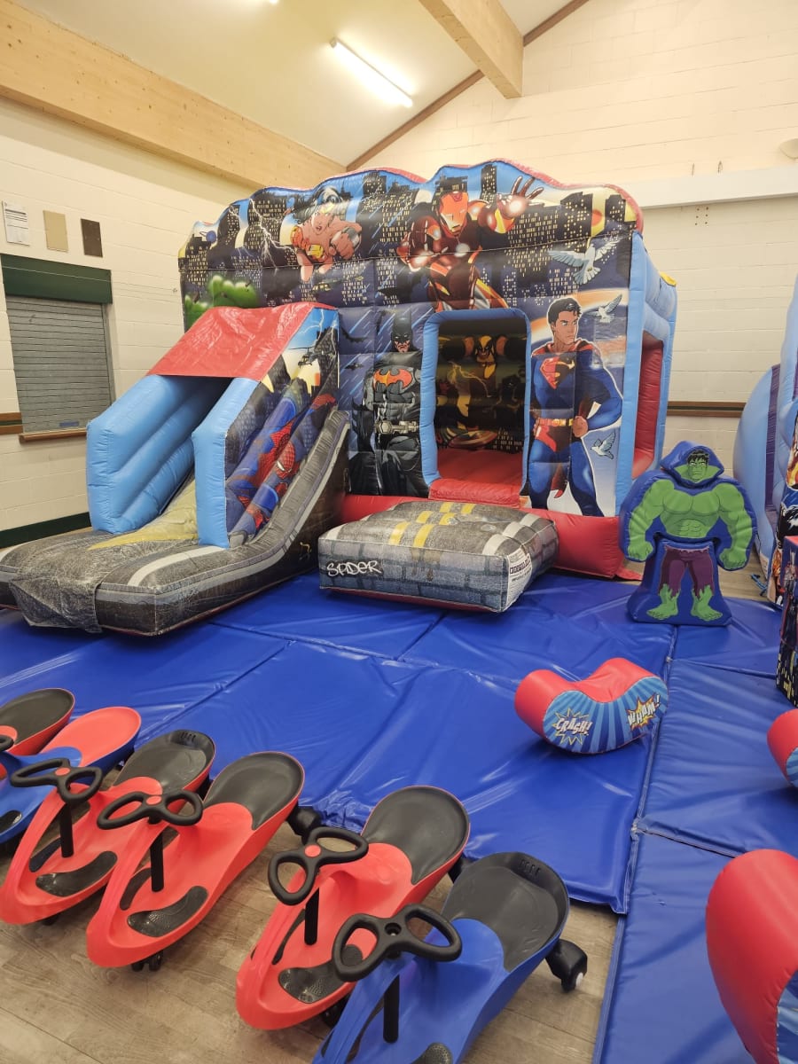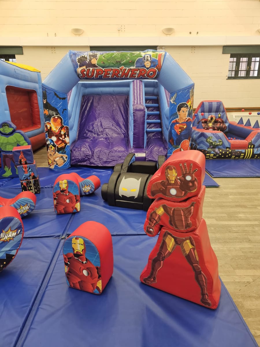 Are you ready to give your child the ultimate birthday experience? Our Superhero Package is here to save the day! Perfect for any little superhero enthusiast, this package guarantees hours of fun and excitement. Featuring a Superheroes Bouncy Castle With Slide, mini slide, ball pool, and soft play shapes, your child and their friends will be captivated by this immersive experience.