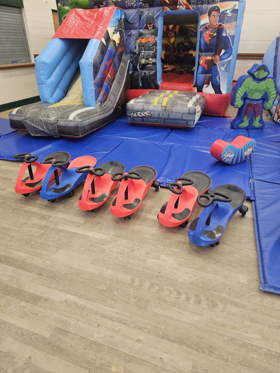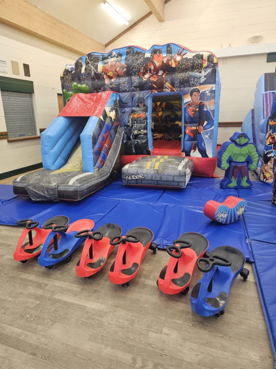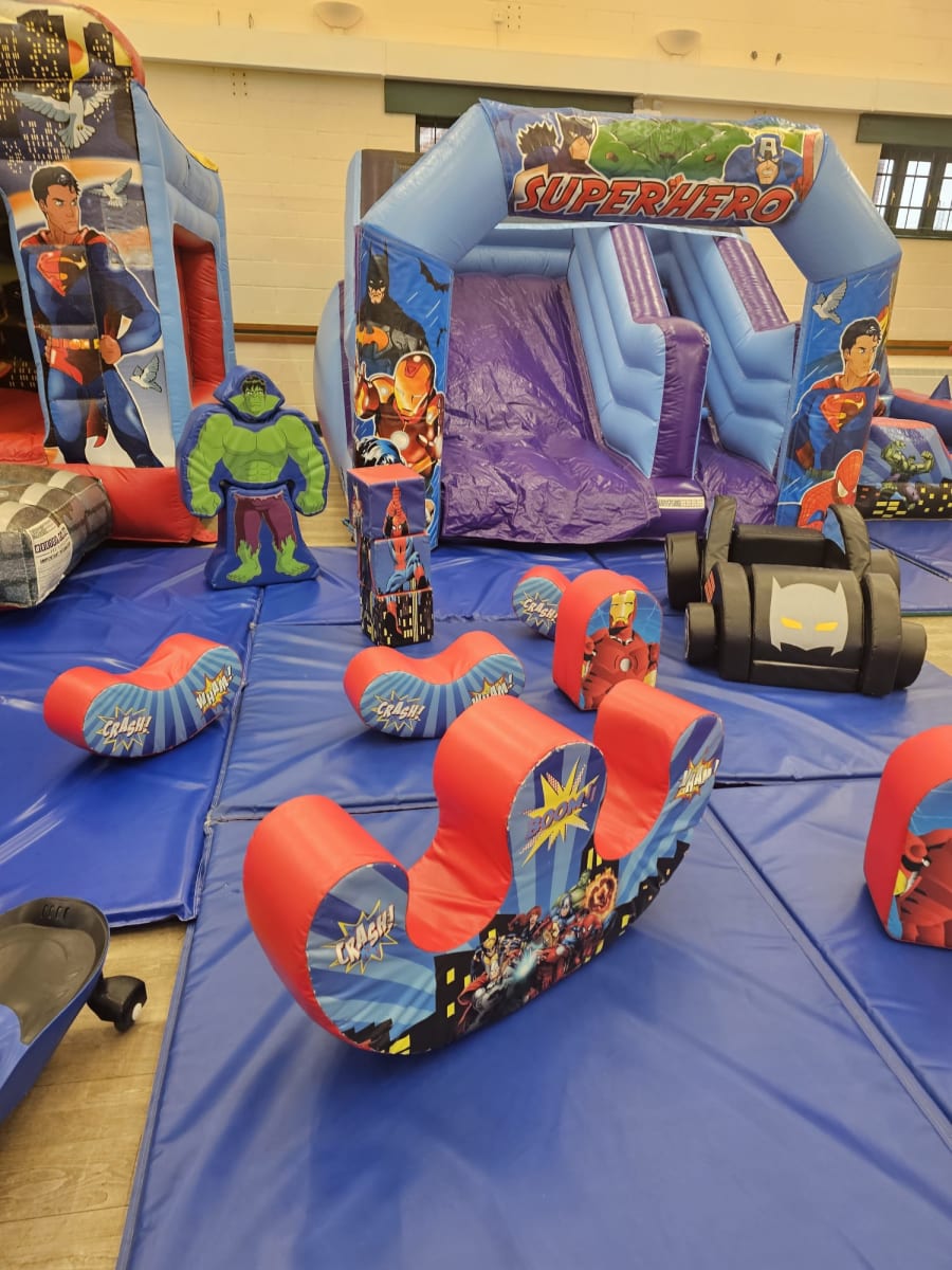 Are you ready to give your child the ultimate birthday experience? Our Superhero Package is here to save the day! Perfect for any little superhero enthusiast, this package guarantees hours of fun and excitement. Featuring a Superheroes Bouncy Castle With Slide, mini slide, ball pool, and soft play shapes, your child and their friends will be captivated by this immersive experience.