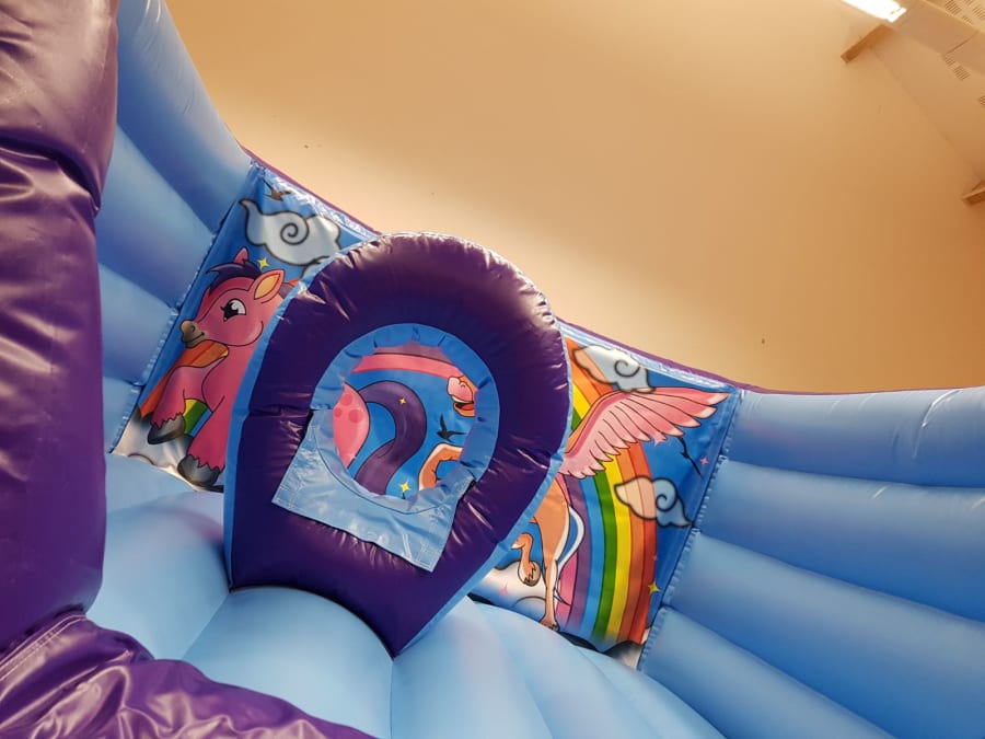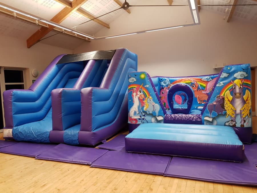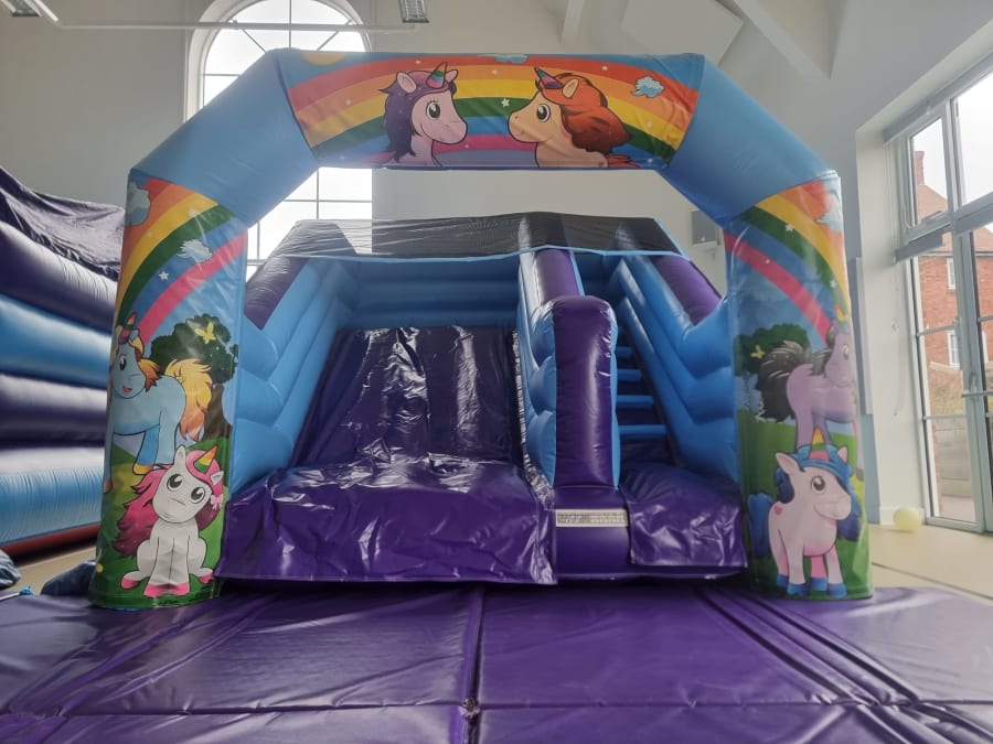 Unicorns v front bouncy castle and unicorns slide