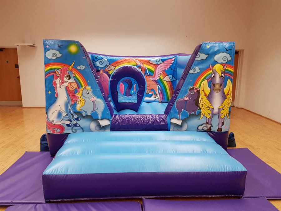 Unicorns v fronted bouncy castle with unicorns par